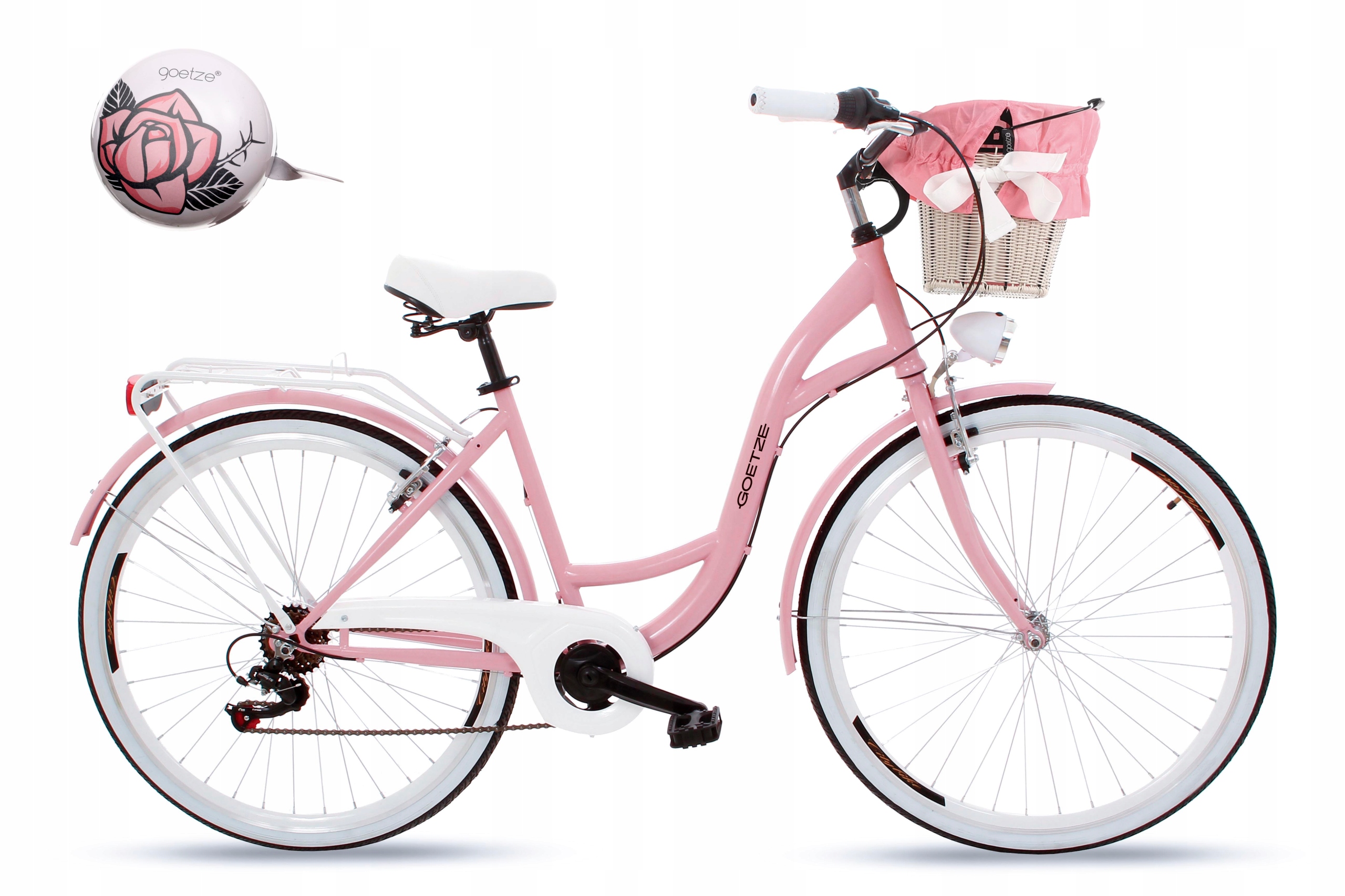 UWAGA: w tej ofercie do zakupionego roweru poza wiklinowym koszem z wkładem otrzymasz duży stylowy dzwonek Goetze o średnicy 80mm, świetnie pasujący do charakteru roweru.